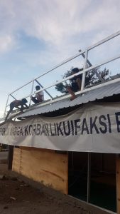 6. BENCANA 28 SEPTEMBER 2018, Meyakini betul soal Takdir Tuhan, 7.000-an orang Petobo yang selamat (korban selamat/ penyintas) dari Likuefaksi (terbesar di Dunia sepanjang catatan sejarah bencana geologik 500 tahun terakhir), berkumpul kembali di perempatan Jalan Soeharto – Jalan Kebun Sari, bangun tenda dan pondok-pondok seng.
