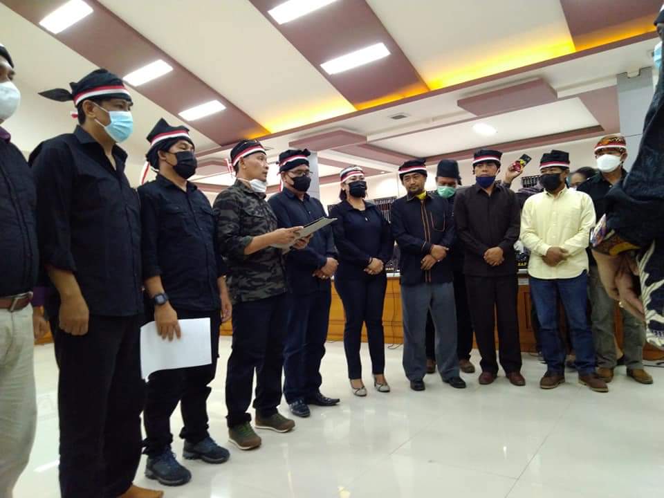 POSO, Celebespos.com – Dengan menggunakan siga dan kostum berwarna hitam sebagai simbol duka cita atas tragedi pembataian yang terjadi di wilayah Kampai Tampo Lore, Kabupaten Poso yang terjadi baru-baru ini. Para warga yang mengatasnamakan Perwakilan Masyarakat Kampai Tampo Lore ini, mendatangi kantor DPRD Kabupaten Poso, Senin, (17/5/2021) waktu setempat.