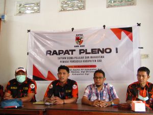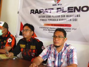 Kabid OK (Organisasi dan Keanggotaan), Dede Setiawan disaksikan Ketua, SAPMA PP Sigi, Gilang Bagus Bagatara dan Anggota melaporkan bahwa pada rapat pleno ke I bertujuan sebagai dasar menentukan hal-hal apa saja yang perlu dipersiapkan sesuai dengan petunjuk dan arahan dari pengarah dan panitia pelaksana muswil kedua SAPMA PP Sulteng.