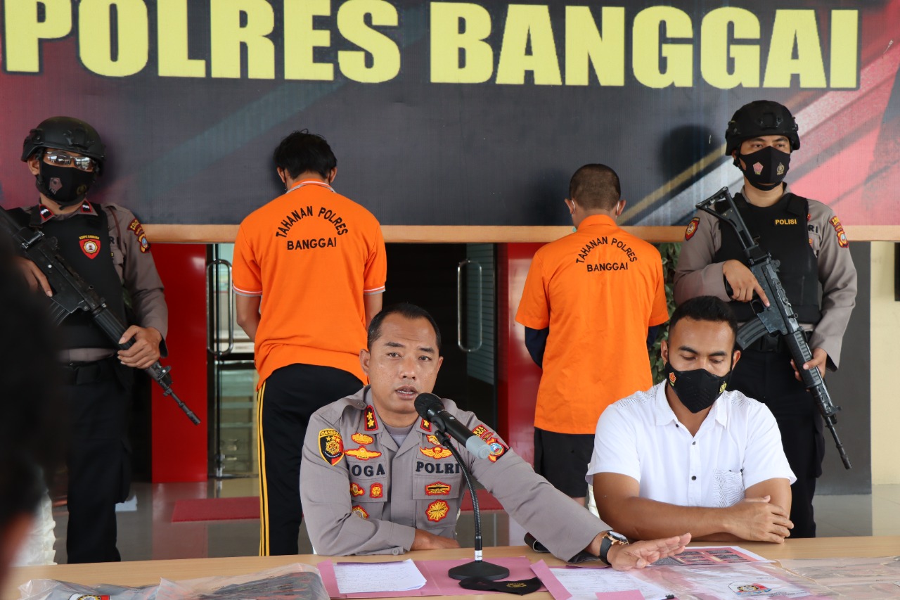 Konferensi pers kali ini dipimpin langsung Kapolres Banggai AKBP Yoga Priyahutama SH, SIK, MH, didampingi Kasat Reskrim Iptu Adi Herlambang.