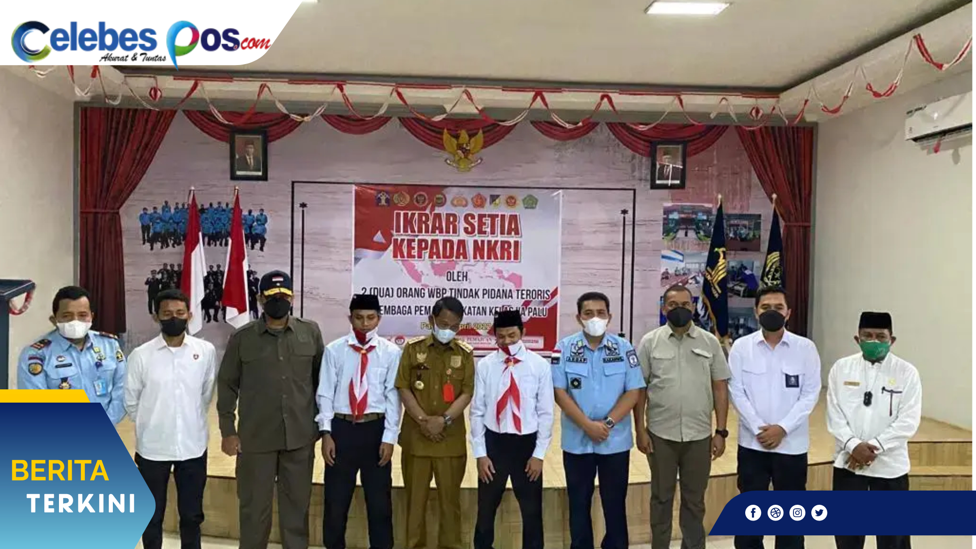 PALU, Celebespos.com – Dua Warga Binaan Pemasyarakatan kasus tindak pidana terorisme berinisial (MF) dan (I) memutuskan untuk mengucapkan Ikrar Sumpah Setia kepada Negara Kesatuan Republik Indonesia (NKRI) pada hari Senin (11/4/2022) waktu setempat.