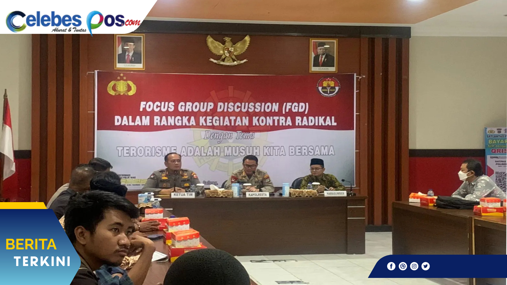 PALU, Celebespos.com – Polresta Palu mendapatkan kunjungan kerja Tim Divisi Humas Polri Yang dipimpin oleh Katim, AKBP. Gatot Hendro Hartono yang didampingi oleh Kombes Pol. Barliansyah dan Tim Bidang Humas Polda Sulteng dengan menghadirkan narasumber yakni Ustad M. Mahmud Rasyid dari BPET MUI Pusat beserta wartawan Polri TV, menggelar kegiatan Forum Group Discusion. Kegiatan itu berlangsung di Gedung Rupatama Polresta Palu, Rabu (10/8/2022) siang.