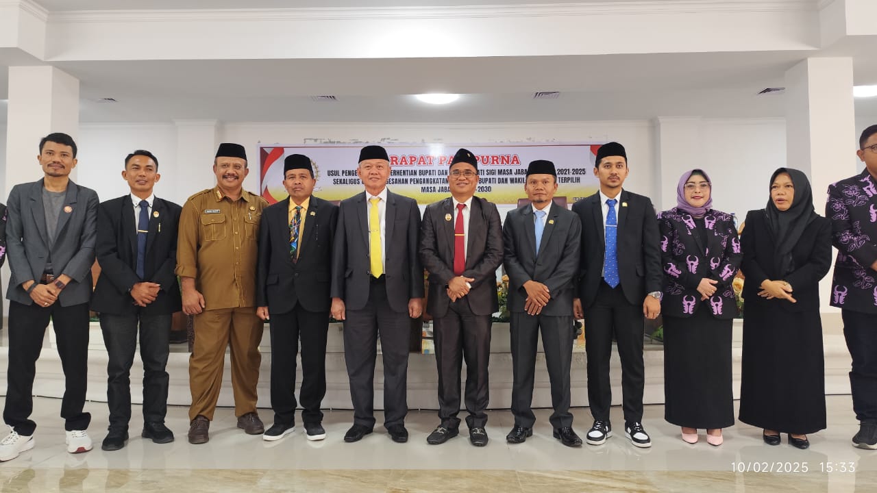 SIGI, – DPRD Kabupaten Sigi menggelar rapat paripurna dengan agenda Usul Peresmian Pemberhentian Bupati dan Wakil Bupati Sigi Masa Jabatan Tahun 2021-2025 sekaligus Usul Peresmian Pengangkatan Pasangan Bupati dan Wakil Bupati Sigi Terpilih Masa Jabatan 2025-2030.